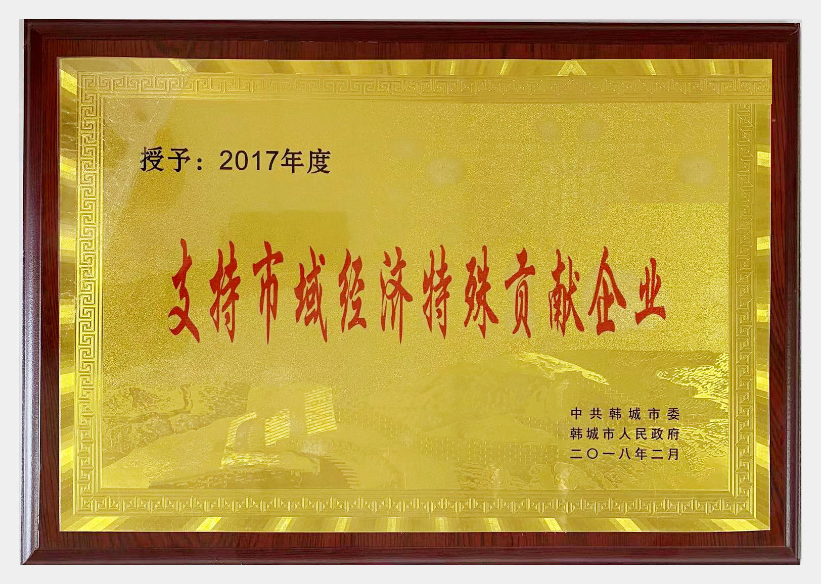 公司榮獲韓城市委、市政府頒發的“支持市域經濟特殊貢獻企業”