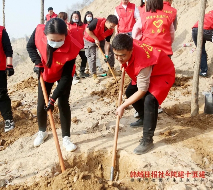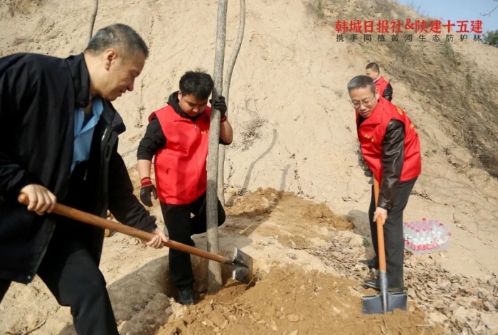 3月10日,正值一年一度的植樹節來臨之際,韓城日報社&陜建十五建“ 攜手同植黃河生態防護林”公益行動在沿黃公路黃河沿岸開展,韓城日報社社長、總編輯樊君峰、陜建十五建總會計師姬小紅一同,共同種下友誼之樹。