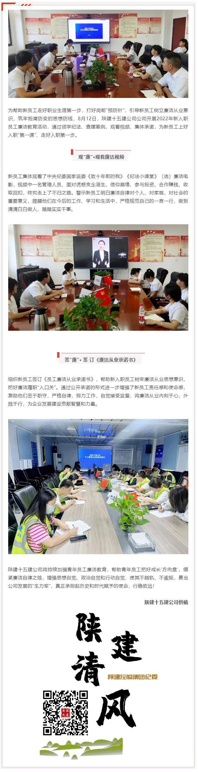 【陜建清風】陜建十五建公司 | 上好新員工“廉潔第一課”,扣好人生“第一??圩印?/b>