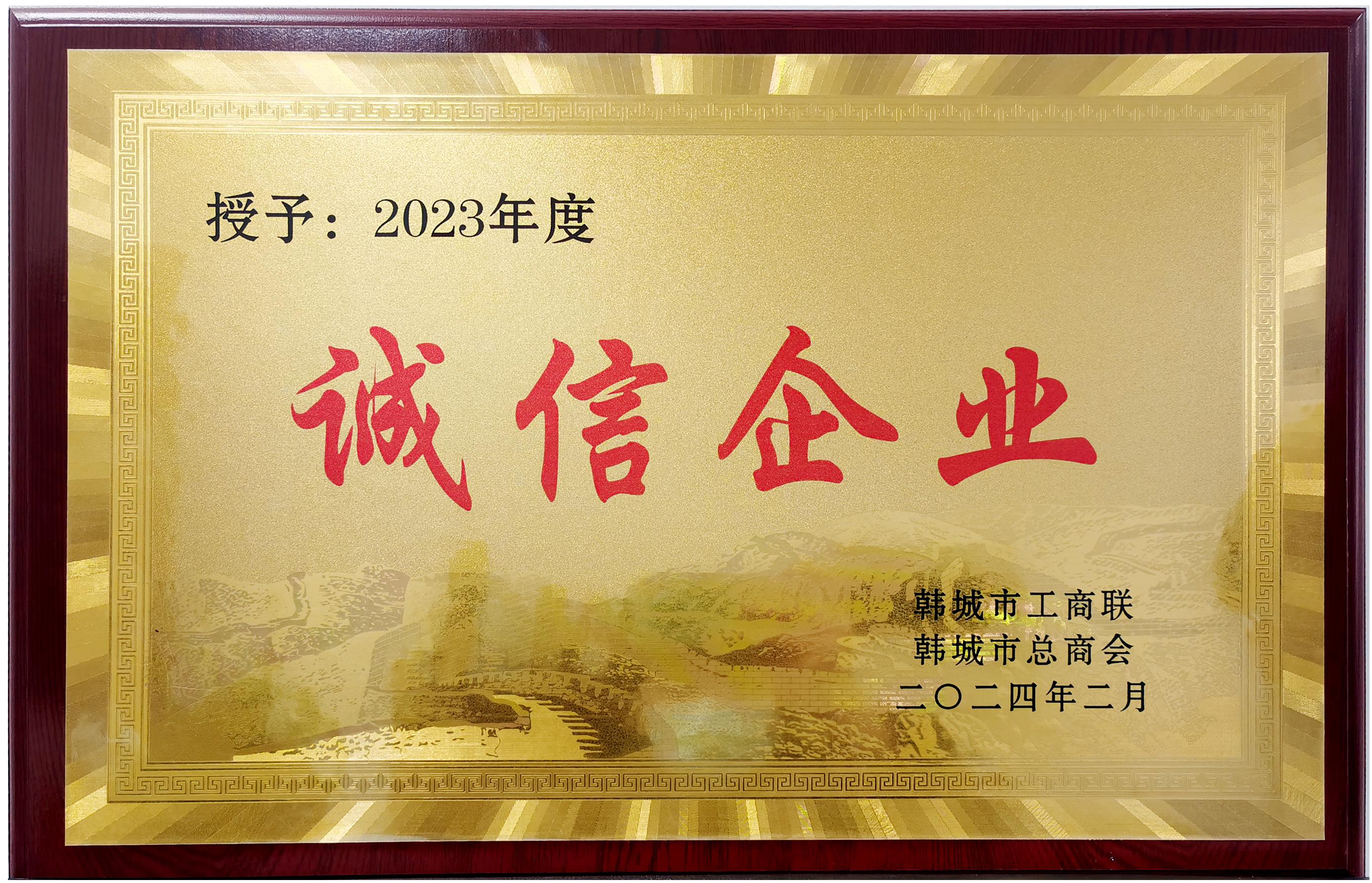 公司榮獲韓城市工商聯、韓城市總商會頒發“誠信企業”