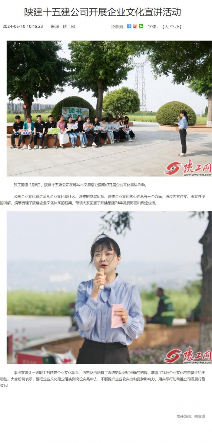【陜工網】陜建十五建公司開展企業文化宣講活動